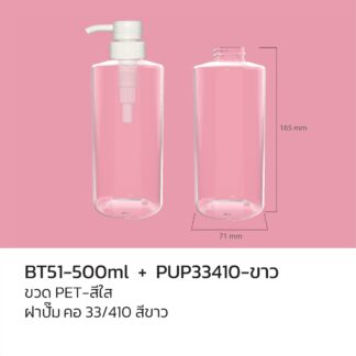 ขวด PET 500 ml. สีใส + ฝาปั๊มขาว/ใส