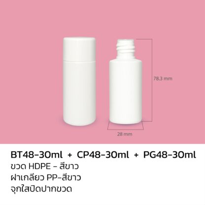 ขวดพลาสติก ขนาด 30 มิลลิลิตร ฝาเกลียว PP จุกใส
