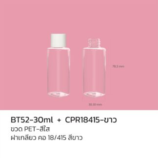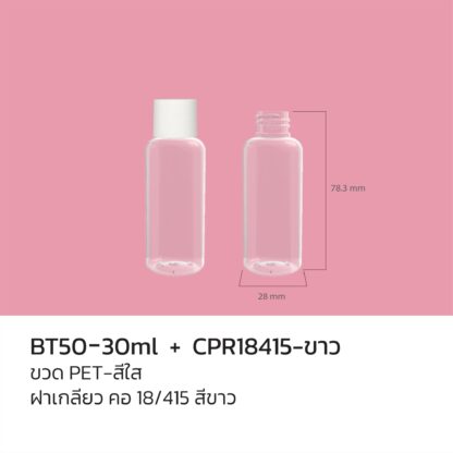 ขวดพลาสติก ขนาด 30 มิลลิลิตร ทรงกระบอกบ่ามน ฝาเกลียว PP สีขาว